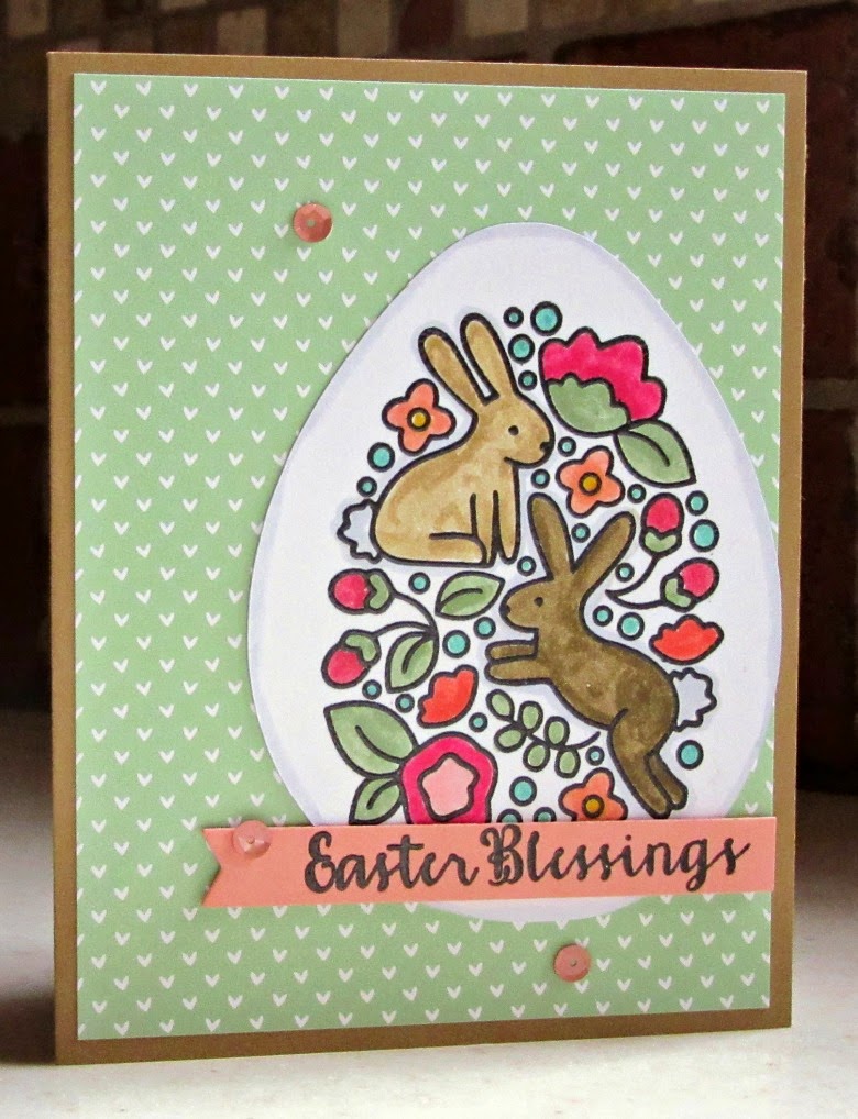 Aren't the bunnies adorbs?!! I used a trio of Impression Obsession dies and cut them from American Crafts burlap cardstock. The cs, pp and ribbon are from Stampin' Up (marina mist and baked brown sugar). It's difficult to see in the pic but the bunnies were mounted on gingham checked pp squares - I have a new camera and I'm still learning:)